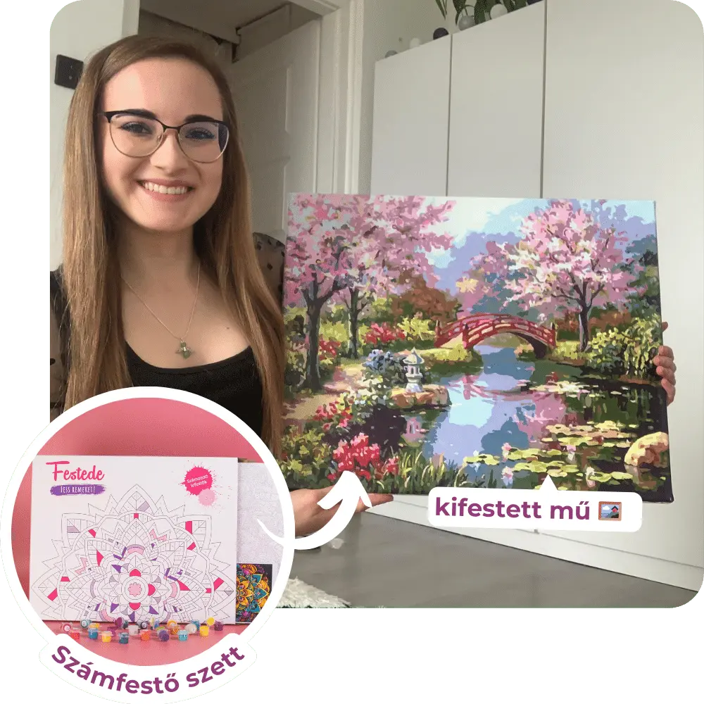 Gyerekkorom óta azt kaptam a szüleimtől, tanáraimtól, hogy ne is álmodjak művészkedésről, abból nem fogok megélni. Ezért még a gondolatát is kizártam az életemből korábban. Ekkor találkoztam a számfestéssel a Festede cégen keresztül. Végre átélhetem az alkotás sikerélményét, ahogy soha sem gondoltam volna. Nagyon hálás vagyok.