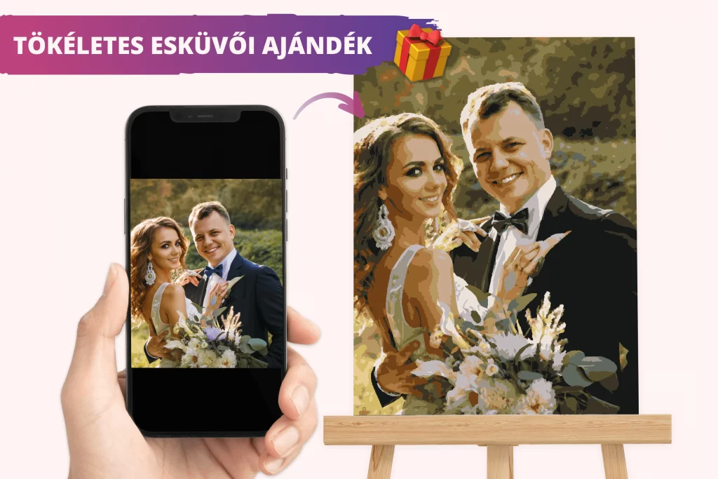 Válassz tehát több száz előre elkészített számfestőnk közül egyet, vagy válaszd az egyedi számfestőt, ha a pár egy fotóját varázsolnád számfestővé, hogy igazán személyes ajándékkal lepd meg őket!