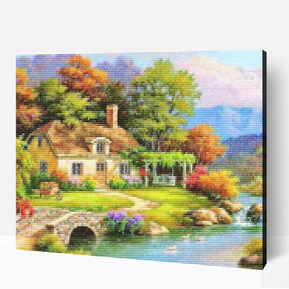 Vidéki ház gyémántszemes kirakó (40×50 cm)